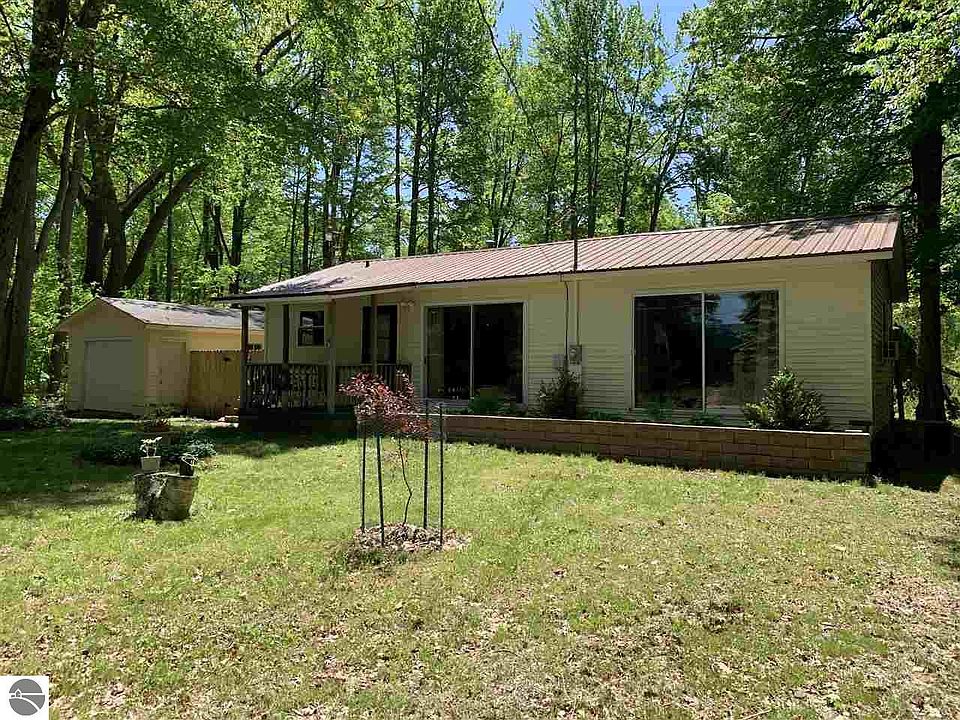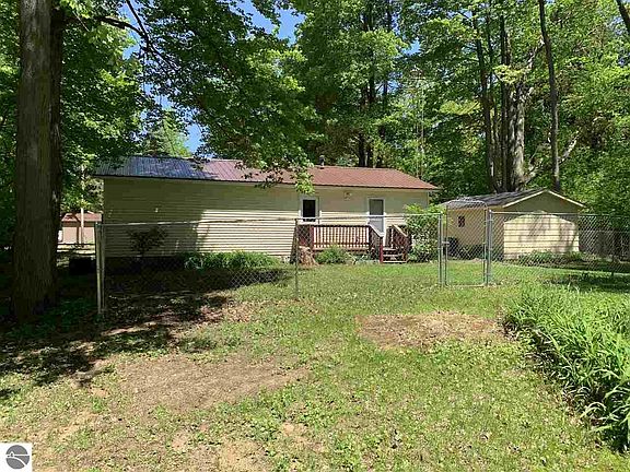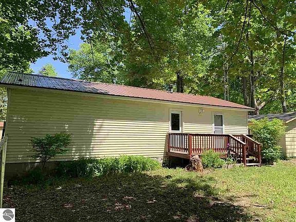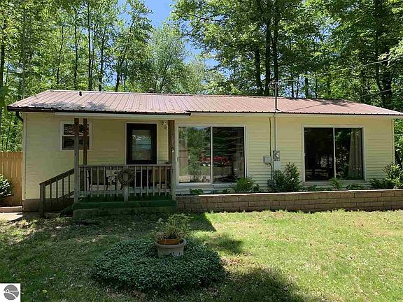 So many attributes!!! Off water Crooked Lake home, Garfield Twp park is located just around the corner with sandy swimming. 2 bedroom ranch home, use it for a get-a-way cottage or enjoy it year around as an affordable starter or slow down residence. New carpeting, never lived on. Level treed lot, plenty of shade. Rest easy with the metal roof. Covered front porch and a nice deck off the back, perfect for grilling. Fenced back yard. The 1 car garage is adequate for your vehicle or water toys. Crooked Lake is a fantastic 264 acre all sports lake with a DNR boat launch and dock. Let the fun begin with this little gem.