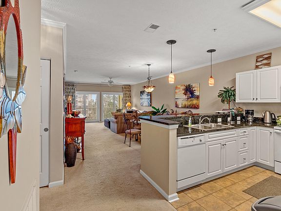 What a beautiful condo! This 3rd floor, elevator building has a great pond w/ fountain view and a partial ocean view. Just a quick walk or golf cart ride to the beach. Golf carts are allowed and parking is available at no extra charge. Amenities are great! This building has an under building garage with a reserved parking space. The water heater has been recently updated. Square footage is estimated and is buyer's responsibility to verify