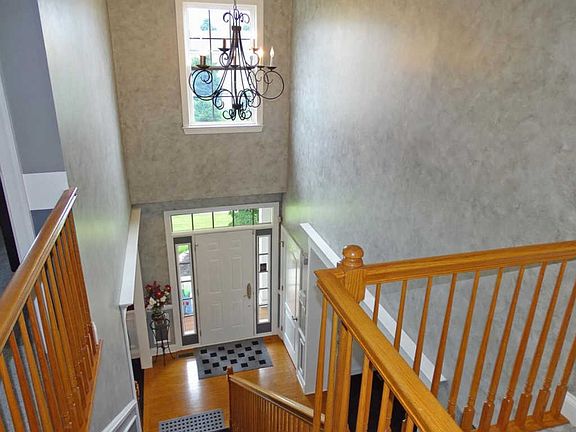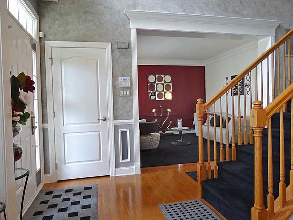 10 year young, Spectacular, Amberley, Colonial Model, 5 bedroom, 2 + 1/2 bath in desireable Belmont Ridge. Enter the home from covered front porch w/trek deck, the perfect place to take in your lush front/corner yard and relax. Upon entering, you are greeted with an Appreciable two-story foyer with ornate chandelier, hardwood floors, custom & meticulous wainscoting, scrupulous trim and moldings. The details in this entry will WOW you & your guests! Entertain in your formal living rm, featuring 7' span, double hung, tilt in windows, w/custom window treatments/blinds, Triple Crown and floor molding over plush w/w carpet. On the opposite side of the foyer you'll find your Formal dining rm with plenty of room for your guests, also with 7' span, double hung, tilt in windows, custom treatments/blinds, Triple Crown molding and wainscoting with w/w carpeting. Toward back of the house, Enjoy an open floor plan family room w/gas fireplace, w/w carpets, breakfast nook w/sliding glass doors to yard, kitchen w/wood floors that span from the foyer, stainless steel appliances/fixtures, 42" cabinets, island fits stools, perfect for entertaining. Main floor also offers an office/study or 1st floor bedroom w/double hung windows, Ceiling fan and closet. Completing the main floor is the powder room and linen closet. Up the stairs is the Deluxe Master bedroom w/double door entry, 10x7 walk in closet & luxurious master bath featuring jetted tub, stall shower, double vanity and toilet rm w/linen closet. The 3 other bedrooms have deep closets (2nd has walk in), blinds on windows & ceiling fans. The hall bath has a double vanity, and 3 piece shower/tub and ceramic tiled flooring. Just across the hall you'll find the laundry room. To top off the 2nd floor there's a huge 17x23 Open Entertaining room with recessed lighting, w/w carpet & a 2nd set of steps that conveniently lead to the kitchen and garage entry door. The fun doesn't stop inside! You'll find an Entertainers delight outside with your low maintenance in-ground pool with sliding board and hot tub, concrete walk around and patio with unique entertaining kabana/shed combo, inside a fully fenced yard with white PVC fence. Full unfinished basement is dry and insulated, ready for finishing & includes walk out steps to the back yard. Rain~water system, Dual gas heat, 2-car garage, driveway fits 4 cars for off street parking and much more! This home is Fabulous & move in ready. Open House Sunday 1-4 All offers presented Monday