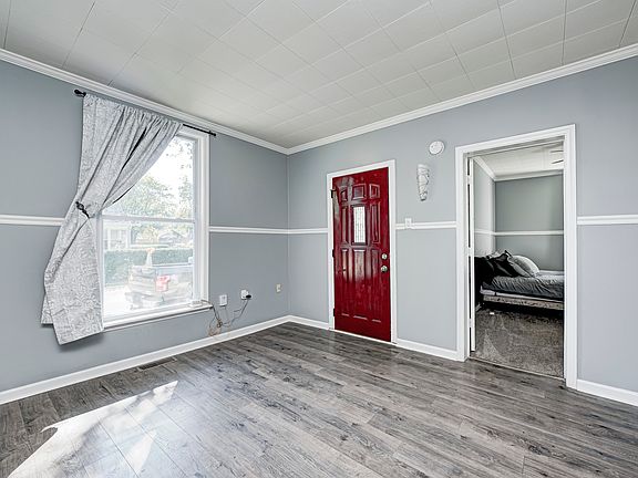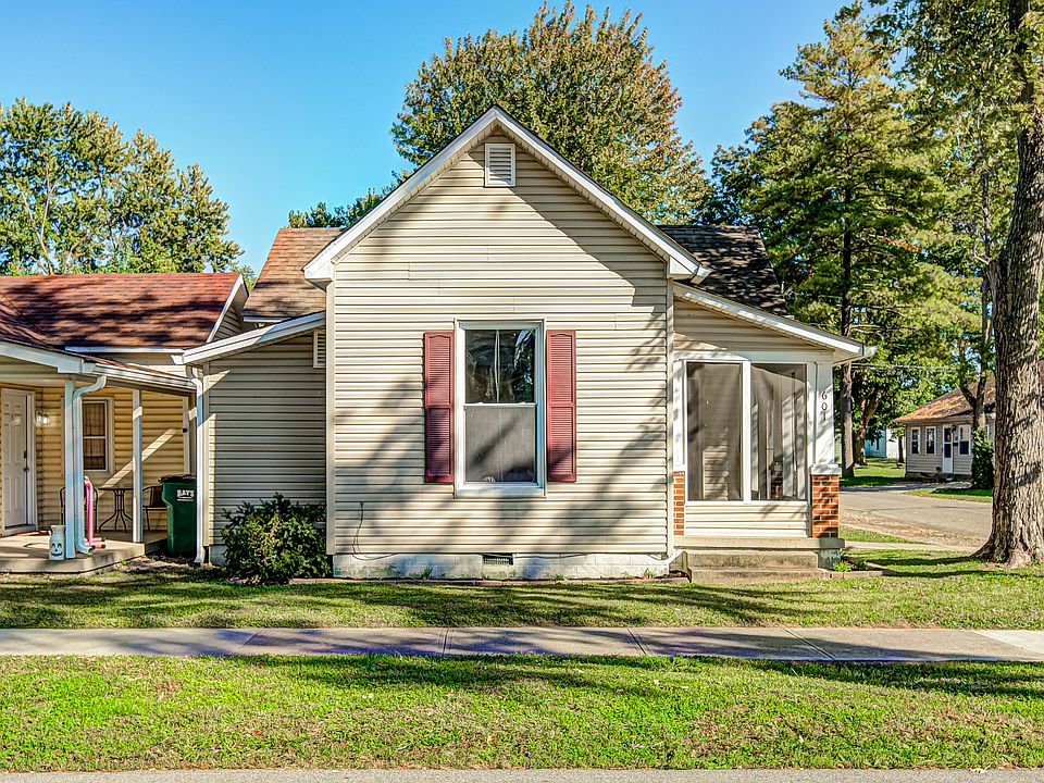 Step inside this 2 bedroom, 1 bath home in Franklin. Entering through your screened in porch you'll find a cozy living space, your primary bedroom and a dining/flex space. Off of the dining space is your full bath with a new tub and surround. Continue through to your galley kitchen and 2nd bedroom. Out back you will find a deck, yard with fire pit and your oversized garage-perfect for a workshop, storage or parking your classic car. Home has fresh paint, newer vinyl flooring and ready for it's new owners to move right in.