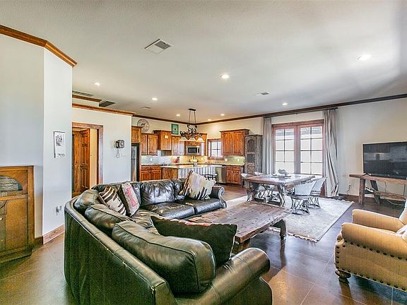 A unique equestrian 25 acre ranchette with a gorgeous barndominium everything is first class. Large bedroom and bath with fabulous walk in closet. Breezeway leading to 6 oversized stalls, wash rack, an office or separate living quarters. Help house 1 bedroom 1 bath. Separate 2 stall stud barn. Sit out at the outdoor living area enjoying the view of the pastures while watching your livestock sitting by the fireplace and grilling your meal or roasting your pizza in the outdoor pizza oven. Arena with viewing stand for any discipline, a 50' round pen. 8 turn outs and cow pasture near creek at rear of property. Large workshop for hay and implement storage. Two 50 amp RV hookups. Creek that runs across the back.