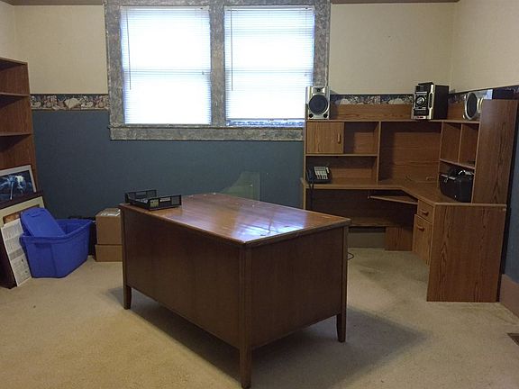 : Located at the corner of Indiana St and Hick St. is this perma-stone 1.5 story building with lower level. This property has previously been used as a church and youth group building. The main level offers a sanctuary with vaulted ceiling, offices and bathrooms. The upper level has a choir loft/meeting area, offices or flex rooms. The main and upper rooms currently used as offices could easily be turned into bedrooms with the addition of closets or wardrobes being added. The lower level offers the kitchen, dining area, another large meeting room, extra flex areas and storage. This building has a side parking lot, street parking and across the street overflow parking area. 2 furnaces and 3 central air units & 5-year-old metal roof. This property is currently zoned R-2 (Mixed Use) the church has been grandfathered in and Area Plan states it can be used as a church.