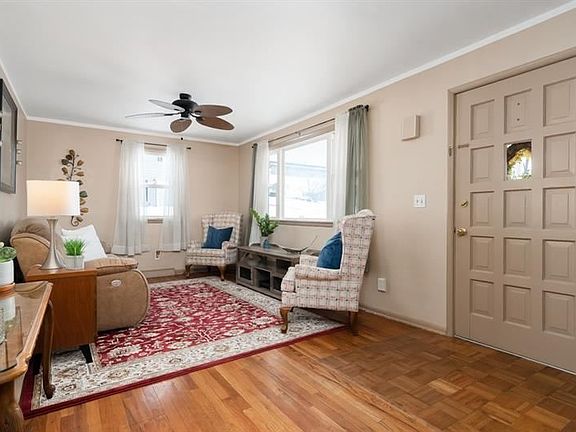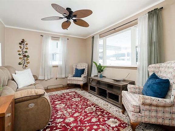 The sweetest home with all the curb appeal! You will be welcomed by the large covered front porch with room to relax. This home has been meticulously maintained, and is ready for you. Lots of light and hardwood flooring throughout. Eat-in kitchen with access to another very large side porch - great for those summer dinners & enjoying the outside. Completely updated bathroom includes vanity, flooring and tiled shower/tub surround. Three bedrooms, ample closet space and additional storage includes stairs to a floored attic. A full basement ready for your ideas. A two car garage and a shed with ramp for the toys and extras. Wonderful backyard space with a patio. Many updates include (since purchased) windows, siding, soffit & facia, and much more!