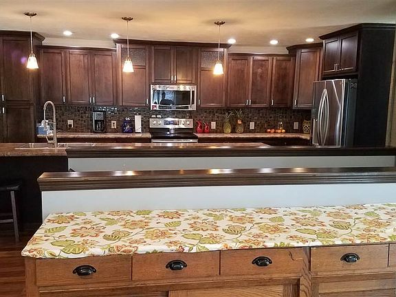 Here's an acreage in town! Huge ranch home on 1.24 acres with 7 bedrooms and 4 bathrooms. 2875 square feet on main floor featuring Walnut wood floors, large windows, family sized kitchen with long island. 2 on suites on main floor, main floor laundry, entry with coat hooks, bench and storage shelf, excellent 4 season room overlooking the large yard. Lower level has 3 legal bedrooms, full bath and big rec room with shuffleboard inlay in tile. Newer shingles, newer furnace, on demand water heater, all new plumbing plus a huge 3 stall garage! Also, additional insulation has been blown in in the house attic. 3690 square feet finished plus 630 partial.