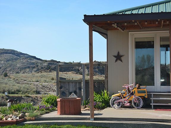 - Exterior Features: Sprinkler System, Patio- Covered, Work Shop, View of Hills, Outdoor Lighting, Views of Makoshika St Park, Storage Shed, Fenced- Part, Views (Panoramic), Garden Area, Out Building, Pole Barn/Building