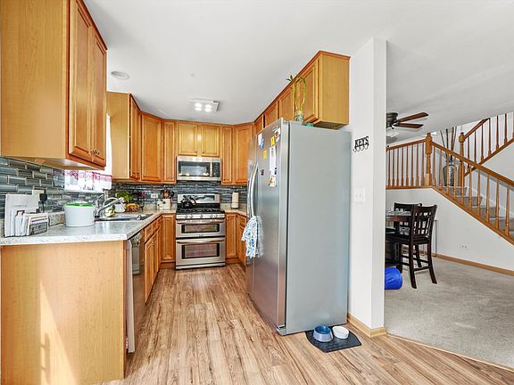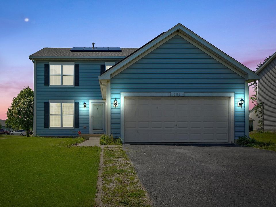 Welcome home! Check out this two story home sitting on a beautiful large corner lot that is ready for a new family! This home features 3 bedrooms upstairs with 2.1 baths throughout, white doors & trim. Recently updated gorgeous kitchen with maple cabinetry, new countertops, backsplash and fixtures with all new stainless steel appliances. Sliding doors lead to back yard. Entertain in the formal dining and living room or relax in the family room. Good sized yard with patio for entertaining and a full basement that can easily be finished for even more living space. Newer furnace and newer water heater. Solar panels are being rented for $40 a month that can stay or be removed. Electric bill is only $15 a month.