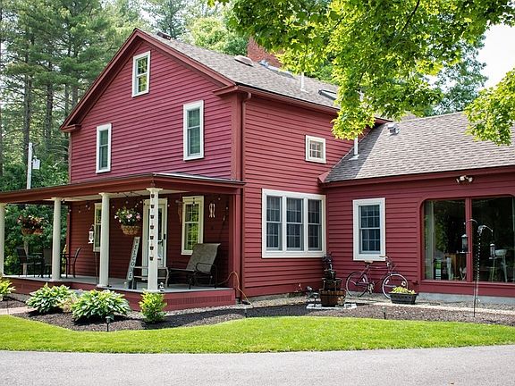 Absolutely stunning antique property abound w/ charm inside & out! Quintessential NE town center setting walking distance to town commons, library, elementary school, & cafe. Beautifully maintained grounds w/ large, flat yard, fenced-in patio, garden, & mature plantings. Thoughtfully updated w/ current day finishes while preserving the home's character & alluring features such as exposed beams, farmers porch, wide pine floors, & 5 fireplaces. New central AC condenser & gas HW heater, (2023), Whole house gen hook-up (2022). Very open kitchen w/ granite, SS appliances, & din nook offering peaceful exterior views. Fam rm w/ great natural light. Formal DR & LR w/ wainscoting. Workshop/Gym w/ heated studio above leading into beautiful barn room w/ loft all located on separate rear wing. 2 separate staircases lead to 2nd flr. Spacious primary bedroom w/ huge walk-in closet/dressing room & direct access to common full bath. 2 more beds also on 2nd flr. Walk-up attic, gas heat, & town water!