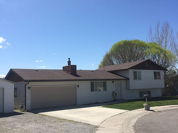 Tri Level, 2 car garage plus 3rd bay detached/toy storage along with semi finished studio, RV parking, HUGE SIDE YARD AREA w/ large pine trees creates a nice 'club house' or niche area. end of Cul-de-sac location, quick access to main thoroughfare, Metal siding, covered patio, Electric heat plus Gas fireplace, Sprinkler system, fire pit, Home backs up to church property.