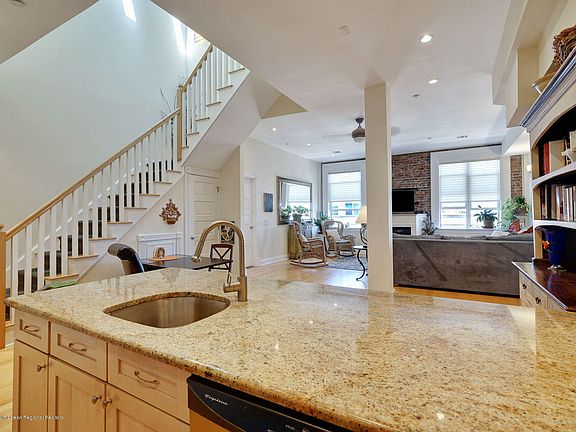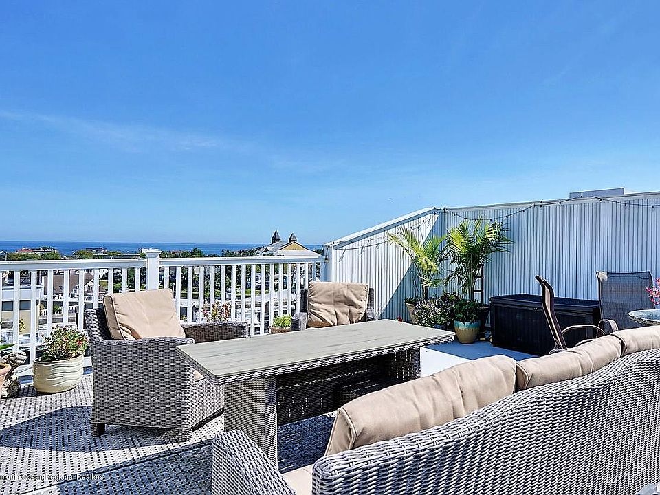 Downtown Penthouse living with roof deck ocean views. This open living two bedroom condominium shows like new. Over sized rooms, massive windows, exposed brick and a gas fireplace. This home has a private 500+ SF roof deck overlooking downtown and Ocean Grove plus sweeping views of the Atlantic Ocean; or enjoy the park on the Bangs Avenue side of the building. Additional storage and gym are located on the lower level. A one of a kind home!