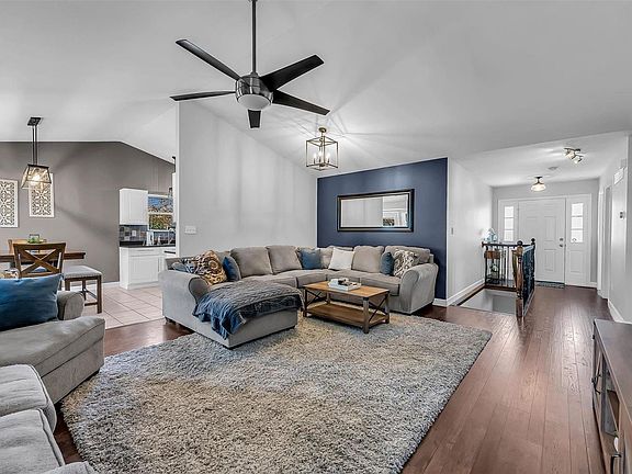 Welcome home! This stunning property features vaulted ceilings in the expansive great room, creating an open and airy atmosphere. Enjoy the beauty of new vinyl plank flooring in the living room, complemented by cozy carpeting in the bedrooms. The finished lower level is perfect for entertaining, boasting a bonus room and a wet bar, along with a full bath for added convenience. Situated on a desirable corner lot, the back patio invites you to relax outdoors. With solid surface countertops throughout and a spacious 2-car garage, this home offers both style and functionality! Don’t miss out on this incredible opportunity!