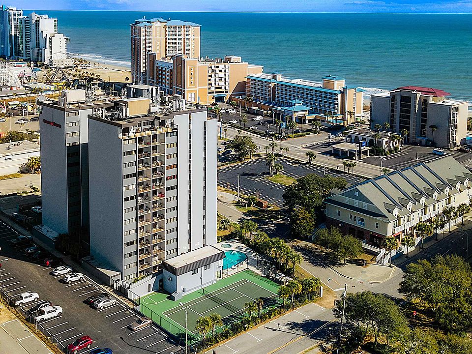 Nice 2 bed 2 bath condo, and end unit on the 10th floor, with an ocean view from your balcony. Holiday Tower is located on 6th Ave S, a block off the ocean front. HOA includes everything except the unit's interior electric and the HO6 policy. Amenities include tennis court, shuffleboards, BBQ Picnic area, Basketball 1/2 court area, and outdoor pool with a enclosed whirlpool spa.