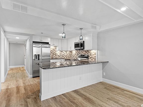 - Features: Breakfast Bar, Stainless Steel Appliances, Solid Surface Counters