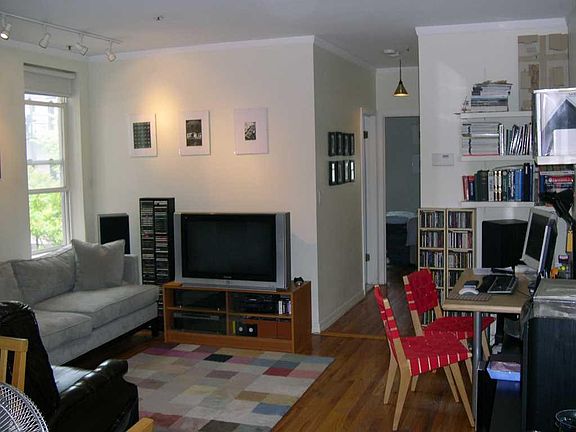 Great floor-plan in well-maintained brick building with huge storage space and laundry in basement. Home features hardwood floors, high ceilings and windows in every room. Fantastic, open, great room accommodates either formal dining or home office in addition to ample living space. Indulgent bath just renovated with all new fixtures and custom tile. All this close to the city's best restaurants, shops and parks with easy transport into NYC. Sorry, no pets allowed in building. 1 year
