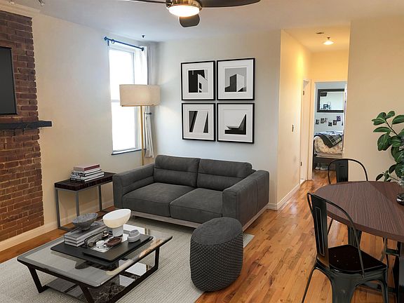 Great sized modern one bedroom. Quiet top floor unit that floods with natural light. Bonus large storage area. Updated kitchen with newer appliances. Beautiful exposed brick mantle gives the unit a warm character feature. Wall-to-Wall/ Built-in closet organizer in bedroom. Bathroom is spacious with modern fixture and new vanity. Hardwood floors throughout. Laundry room in blg. No pet blg. Some photos have virtual staged furniture. Short walk to 9th street LightRail stop, and within a few block radius of the Monroe Center, ShopRite,ACME, local cafes and eateries. Really a new explosive area of town and at this price, sure not to be missed!