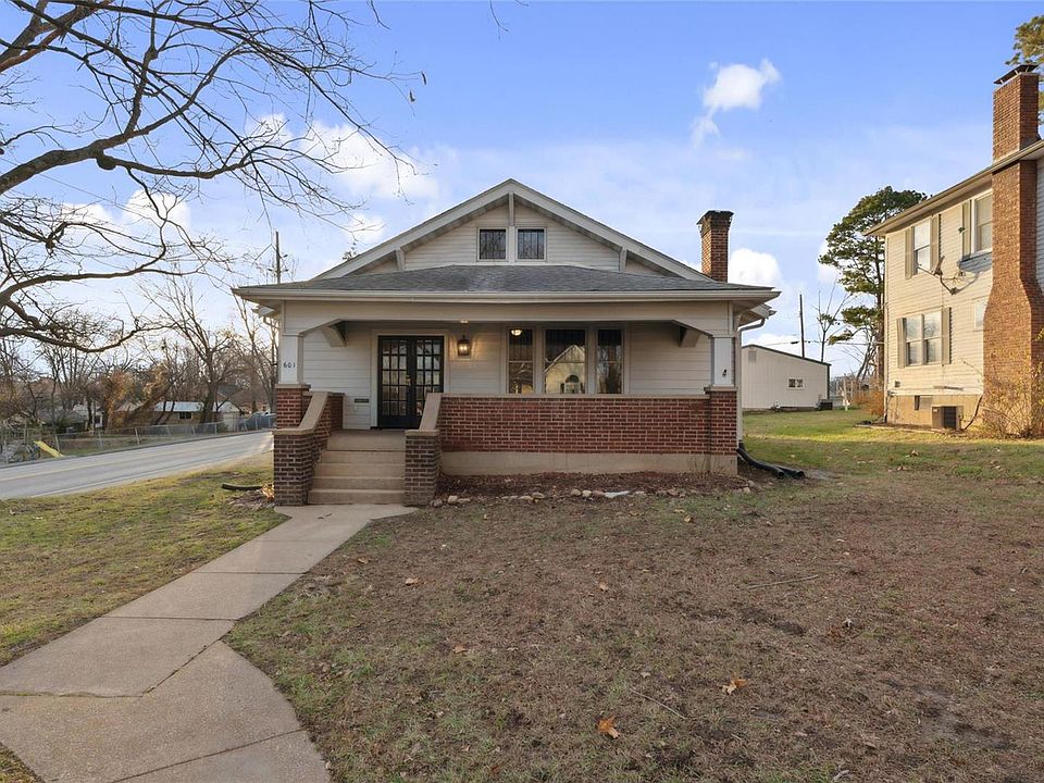 Step into this beautifully remodeled home! Fresh paint and all new lighting. Enter the glass French doors as you pass through the covered front porch and notice the 9-foot ceilings with hardwood floors, original wood doors, and crystal knobs all restored to their full beauty. The living room features a brick wood burning fireplace with built-ins. Through the separate dining room, the fully updated kitchen will immediately catch your eye. Custom cabinetry with new counter tops, all new stainless-steel appliances, a refrigerator that stays, and a walk-in pantry! This home is very versatile with 3 bedrooms and 1.5 bathrooms, 1 of these rooms could be used as a sunroom instead and the entire upper level would make a fabulous rec- room! Full bathroom on main level is beautifully updated. Downstairs is unfinished and ready for your ideas. 1/2 bathroom located downstairs and a shop area. Level corner lot with a detached 2 car garage with a carport for additional space.