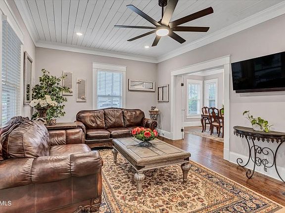 Historic 5 bed 3.5 bath craftsman home on corner lot with loads of upgrades and modern charm. Upon entry from the large covered front porch, the living room has a gas fireplace with mantel and original refinished hardwood floors which carry thru to the dining room. In the dining room there is ample natural light along with a beautiful original built-in cabinet and a tiled brick gas fireplace. The kitchen is a chef's dream with soft close cabinets and drawers, granite countertops, subway tiled backsplash and stone floors along with a 5 gas burner KitchenAid downdraft cooktop with hood and pot fill station, KitchenAid stainless dishwasher, farmhouse sink with a glass rinser attachment, GE Cafe commercial stainless fridge freezer combo, Ilve Majestic 6 gas burner with hibachi grill range oven with stainless hood and another fill station, a built-in Thermador coffee machine, and Frigidaire microwave all surrounding a 12 ft island topped with custom salvaged 1775 barnwood that stores the built-in KitchenAid pellet ice maker and wine fridge. Across from the kitchen, there is a large laundry room that includes more cabinets and sink area with front load washer dryer and entry to the back deck, a spacious pantry, half bath, and cellar access. Down the hall, you will find 2 bedrooms, one with a floor to ceiling white-washed brick corner gas fireplace and a full bath between with marble tiled walls and glass enclosed tiled shower, double vanity with chandeliers all with copper finishes. Take a break on the twin bed tucked perfectly under the stairwell. The large master suite includes a 7x14 ft shower with 2 temperature color changing rainfall heads and numerous wall mounted heads, a 22 jetted Ariel whirlpool tub with waterfall and display control featuring Chroma therapy aromatherapy, double sinks with vanity area, large walk thru closet, electric wall fireplace, wall ac heat unit for supplemental coolness, and French doors leading to the rear deck in the gated backyard. Upstairs you will be amazed at the closets for the 2 bedrooms, one with cabinet storage plus another full bath with tiled shower bath combo with glass door and corner vanity. Also, there is a 14x20 ft unfinished attic space that would make a great movie room or rec space. 10 ft Shiplap ceilings and recessed lighting throughout downstairs. Home has been replumbed with pex, completely rewired, reinsulated, and an oversized water heater installed to accommodate the enlarged shower. At the rear of the lot a 12x24 ft storage building with separate electric completes this dream home.