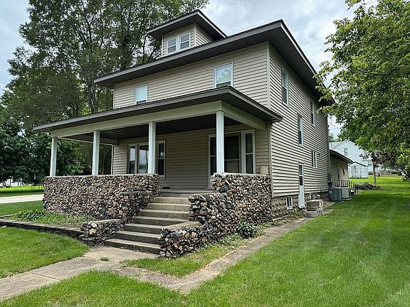 If you're looking for beautiful woodwork this is a home worth looking at. Its a very well maintained 4 bedroom, 2 full bathroom home on a corner lot. Built in 1911, this home has only been owned by 2 families. The most recent family has owned it for the last 57 years. The main floor has a kitchen, dining room, Living room and a sitting room with a beautiful fireplace along with a full bath and main floor laundry that were added in 2019. The second floor has 4 BR and a full bath. The walk up attic offers additional storage or the possibility of another bedroom if finished. Basement is unfinished and has laundry hook ups. All HVAC has been updated in 2008. Water heater in 2020. New roof in 2015. Attached 2 stall garage. This home is move in ready.