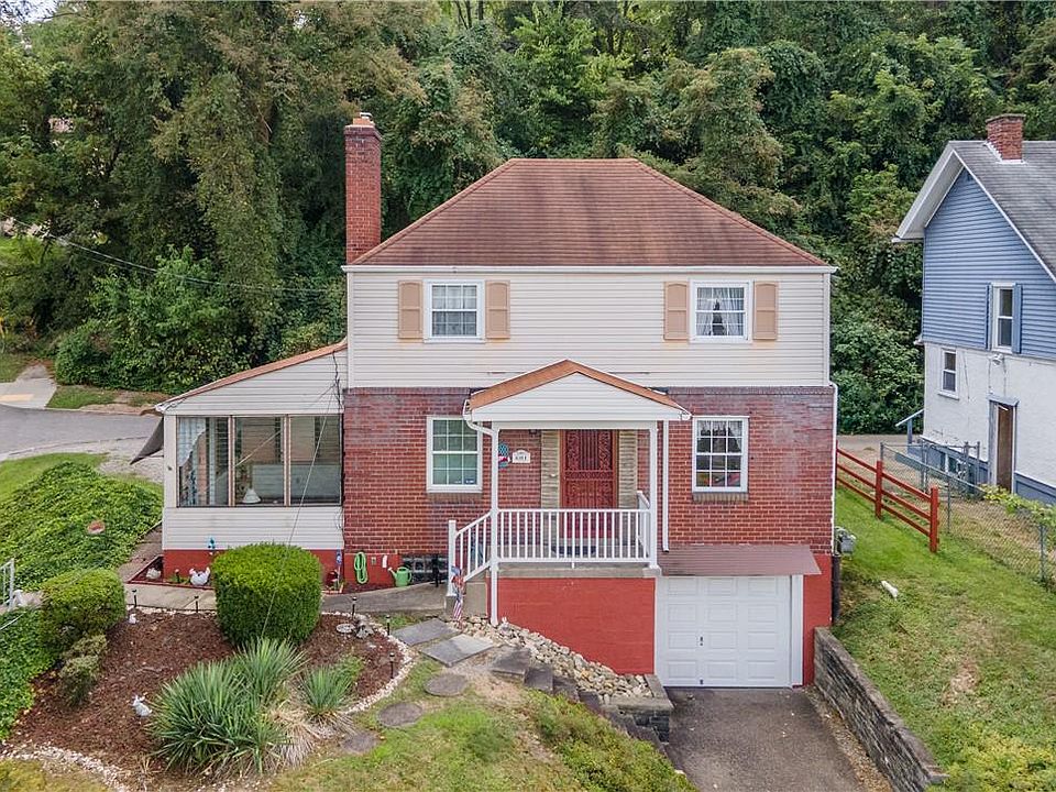 This adorable 2-story brick home has a classic floor plan. The covered front porch welcomes you home. The large living room features a fireplace with a beautiful white mantle. Access to the side sunroom is through the living room. The dining room with hardwood floors is where you can enjoy your favorite meals. The kitchen features parquet flooring, cream cabinetry, and white appliances. A door to the rear yard is accessible through the kitchen. The master bedroom is generously sized, providing plenty of room for your furnishings with plenty of natural light. The second bedroom features hardwood flooring, The main bath is spacious with white ceramic tile wall, ceramic floor, and white fixtures. The laundry is located in the lower level. A one-car integral garage will shelter your car from the elements.