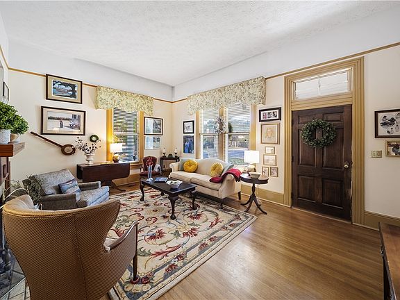 Step into timeless charm with this 3 Bedroom, 2 Bath home in Opelika’s Historic District, built in 1910 and beautifully situated on a corner lot. From the inviting covered front porch to the elegant formal living and dining rooms, cozy den, and light-filled sunroom, every space tells a story. Living Room features tall ceilings, wood floors, and a gas log fireplace. Dining Room with wood floors and beautiful built-ins. Spacious Kitchen with two pantries and an island. Den with built ins and a gas fireplace. Sunroom with lots of light! Dumbwaiter. Spiral staircase leads to the basement garage with storage. Back Deck. Additional exterior storage room. 4 car parking spaces in driveway. Freshly painted exterior and New Heating and Air in 2025. Roof Replaced in 2021. Don't miss the chance to be on the Victorian Front Porch Tour!