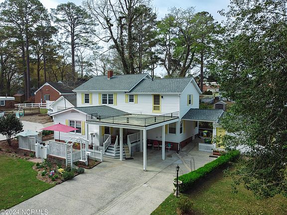 Beautifully updated one-of-a-kind home in a quiet residential neighborhood. Perfectly situated for leisurely strolls, visits to the library or downtown shops and eateries. Features include beautiful hardwood floors, spacious living and dining rooms; a beautifully renovated kitchen that is a home cook's dream. Home has tons of storage. Each of the 3 bedrooms has an en suite bath. The downstairs primary suite is spacious and has a walk-in closet. Upstairs, you will find 2 more bedrooms, a den and a small kitchenette. This space would make an ideal mother-in-law suite. You can sit and rock the days away on the covered front porch, or enjoy a nice BBQ on the patio. There is also an attached workshop and a small shed that conveys. Beautifully landscaped yard. The home had a new roof installed in 2021, the Downstairs HVAC was updated in 2019 and the upstairs was updated in 2023.