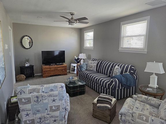Beautiful corner property in the desirable neighborhood of Ventnor Heights. Entering this split-level home welcomes you to all the updates, recently remodeled kitchen, newer vinyl flooring, new rear deck, and new ceiling fans throughout the home. On the lower level there is a large living room, a full bath, a bedroom, and new washer and dryer. On the upper level, there are the 3 additional bedrooms and full bath. The property is situated on a large corner lot with plenty of parking and a large garage. Lots of storage on the ground level with a new half bath. The fenced-in backyard is ideal for entertaining with a covered patio area, natural gas plumbing for a grill and an outside shower, (enough room for pool). Other recent upgrades are 2 new storm/screen doors, new tankless water heater, and several new electrical outlets in 1st floor storage area. The layout is just ideal for year-round or summer living. Also, there is room for potential bedroom or living area in space above garage. The property is well-maintained, and has central air. Walking distance to Ski Beach for events, restaurants, supermarket, the beach and boardwalk, but located on a quiet street. Offered furnished.