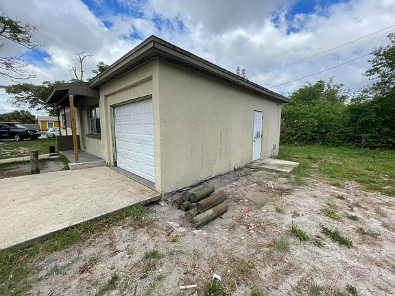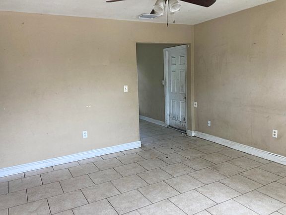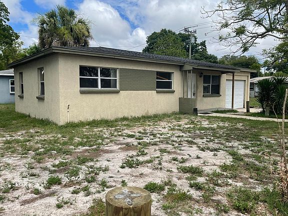 This 3 bedroom concrete block house features an attached garage, central air, and tile flooring.