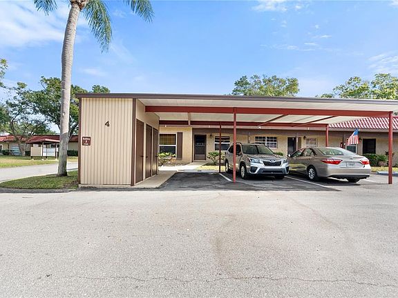 End unit in the beautifully maintained 55+ community of Pinewood Village! This is a spacious 2 bedroom 2 bath first floor condo that is conveniently located across from the heated pool. There are many features including walk in closets in bedrooms, an enclosed back patio, in unit laundry, assigned covered parking and outside storage closet. This desirable community offers low-maintenance living in a prime location close to golfing, beaches, Tampa International Airport, restaurants, shopping, and much more! The monthly fee includes cable, internet, water, sewer and trash. Great opportunity for year-round or seasonal, not in a flood zone!