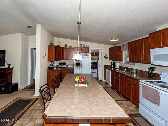 The room and space you have been looking for. This VERY well-maintained home has lots to offer. Large open living/kitchen/dining area, lots of large closet space beautiful kitchen with large island. The large bathrooms (yes BOTH) are definitely impressive. There is a stunning back covered porch to enjoy the Mingus Mountain views. With 1905 Sqft and 4 bedrooms there is plenty of space for everyone. The 1-acre lot will speak for itself when you see it, with grass in the front and back, mature trees, and a large garage/workshop. This home has been loved from the start and is move in ready.