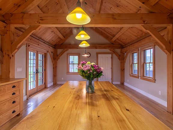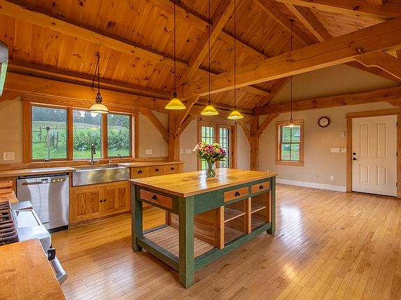Lovely farmhouse located on 20.15 acres of open meadow pasture land and enough woods to cut your own firewood. The current owner renovated the el of the house from pouring a new concrete foundation to building a post and beam 26x17 kitchen with cathedral ceiling and a wonderful pantry. There is also a new mudroom. The main floor is essentially hardwood floors and the upstairs is refinished softwood floors. The upstairs bedrooms are both very large. there are small outbuildings that are viable for animals but the barn is in need of repair.