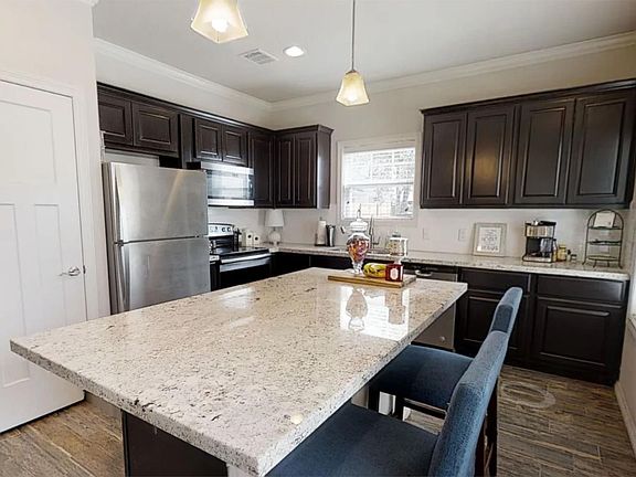 Has an open kitchen/living area floor plan! Granite countertops, crown molding, pantry, and much more!! The bedrooms are very spacious and each room has their own large walk in closet and bathroom.