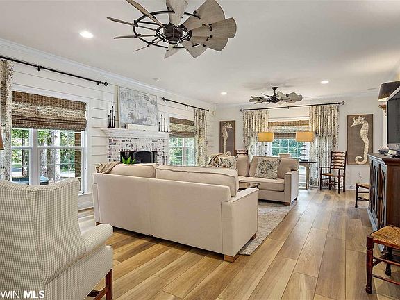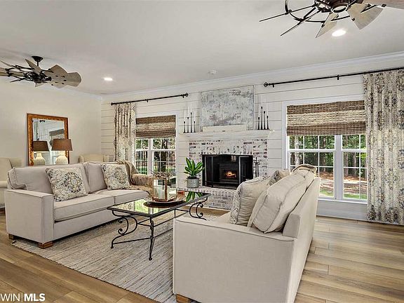 Stunning colonial in Bay Minette's Canterbury subdivision. This 4 bedroom, 3.5 bath home had an extensive renovation done in 2018 with no attention to detail spared. Kitchen offers white cabinetry and tile backsplash for a clean, modern feel along with stainless appliances to include double ovens, dishwasher, ice maker and gas range. Sub-Zero refrigerator. Tons of granite counter space with a center island containing an additional sink. Luxury vinyl plank flooring throughout main floor and master bedroom. Living room offers wood burning fireplace and shiplap accent wall. Dining room has ample custom bench seating, with storage, for entertaining guests. Formal living/study contains built-ins flanking a large window offering tons of natural light. Master bedroom has a gas fireplace and sliding barn doors leading into an unbelievable master bathroom that features custom double vanities, his/her closets and a massive fully tiled shower with multiple shower heads! Bedroom 2 includes a full bathroom while bedrooms 3 and 4 share a full, jack-n-jill bath. Detached, 3 bay garage for plenty of parking/storage. This one is a must see!