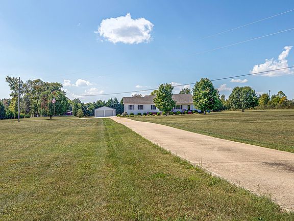 IMMACULATE! This 2bd/2ba home has 1764sqft and is sitting on 5.33 acres with 24x30 detached garage! Large laundry room and office! Open floor plan. Beautiful hardwood floors throughout. Covered back deck with above ground pool is perfect for entertaining and relaxing. 2 car attached garage leads you in through the office. Lots of counter space and cabinets. Located close to the schools! Big shade trees and level acreage. Gas FP in the living room. Master bath is spacious with jacuzzi tub and separate shower. Double vanities in master. This house is immaculate and a must see!