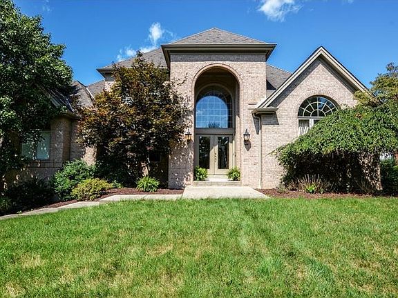 RARE Opportunity for Treesdale. Well built with fine appointments, this four bedroom, four and one half bath brick Provincial is ideally positioned on a corner lot overlooking the 5th green. An impressive two story foyer underscored by limestone and marble introduces your guests to the main level rooms which include a formal dining room with vaulted ceiling, a well-appointed kitchen tastefully designed with maple cabinets and granite countertops and a sun filled breakfast room that leads to the Trex deck. Light filled from a wall of windows, the great room boasts of newer flooring and a marble accented gas log fireplace, while the den features judges paneling and built-in bookcases. The first floor master suite is highlighted by a sitting room w vaulted ceiling and fireplace while master bath features a spa tub w separate shower. The LL offers a partially finished basement w fireplace and patio access, full bath as well as a spacious four car garage.
