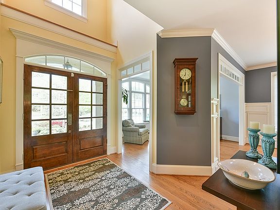 Fantastic floorplan and location. Privately sited with trees separating the home from the neighborhood swimming pool & playground & Army corps of engineer land behind. The open layout & abundant windows keep natural light throughout. The second floor features a master suite with sitting room; a gathering area with charming bookcases in the children's wing; and 3 full baths. The third floor walk up attic has sheet rock stacked & ready to finish. On the main level there is a guest suite. A must see!