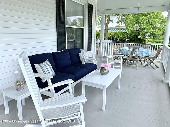 Fabulous seashore colonial in desirable Allenhurst offers a perfect blend of charm, convenience and coastal living. Located on a quiet street in close proximity to the beach, this well-maintained home with lovely curb appeal is move-in ready. A welcoming foyer leads to the bright living & dining rooms and updated kitchen featuring white cabinets and Bosch stainless steel appliances. Timeless architectural details include impressive millwork, 9+ft ceilings, transom windows, custom built-ins and wood-burning fireplace adding to the beauty of this warm and inviting home. Enjoy the summers relaxing, dining and entertaining on the wrap-around porch, paver patio and fenced yard with in-ground irrigation system. The basement provides ample storage and includes a 180-bottle wine refrigerator, treadmill, universal gym and additional refrigerator. A 2-car garage with loft area provides additional storage. Experience the many advantages of living in this wonderful community, including membership to the Allenhurst beach club, nearby downtown, houses of worship, train station and vibrant Asbury Park attractions. Don't miss this exciting opportunity. Schedule your private tour today!