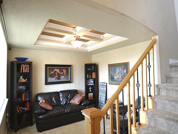 Beautiful 2-story w/smart home technology located high on North Salt Lake's east bench in Eaglepoint Estates on 1/2 acre lot. Stunning grand entry with sweeping stair case flooded with natural light. Elegant architectural lines with arched doorways, vaulted ceilings and coffered ceiling in formal living room. Open kitchen floorplan with plenty of room for gatherings-- includes; maple cabinets, built in desk, large center island w/breakfast bar and pendant lighting. Spacious family room with vaulted ceiling, fireplace, and large floor to ceiling windows. Kitchen dining area leads you to the beautifully landscaped backyard with panoramic views of the valley. Main floor guest suite w/full bathroom. Mud room w/maple lockers off 3-car garage w/extra high ceilings. Master suite w/fireplace, his & hers closets, double sinks and jetted tub. Theater room with projector, screen and surround sound system included! Basement also includes mirrored exercise room, kitchenette, large rec room, cold storage, fireplace and 2nd guest suite. Just a short walk to the Eagleridge Tennis & Swim Club. Buyer to verify all information.