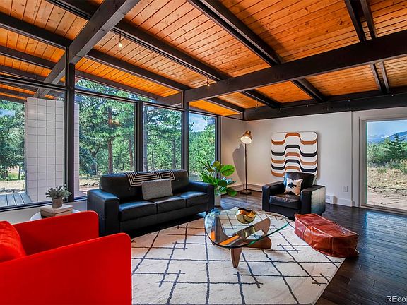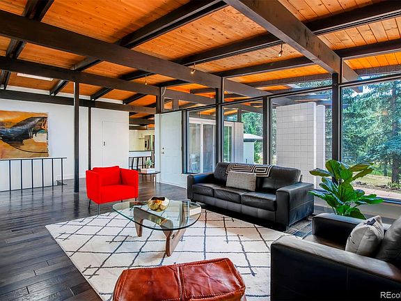 A must-see contemporary mountain estate! Just 10 minutes from Broadway on a private 2+ acre lot with pristine views of Arapahoe peak, this completely remodeled mid-century modern home is a dream come true. Light filled, ample living and entertaining space both indoors and out, 4 bedrooms plus office, open kitchen, all wrapped up in eye-catching architecture. Gorgeous cedar ceilings and exposed beams, double-sided fireplace, and one-of-a-kind open staircase are all highlighted by new lighting and floor-to-ceiling windows. Completely new mechanics (electric, heat system, AC, generator, appliances) and finishes (tile, flooring). Did we mention the almost 4000 sq ft workshop? Add a basketball court, home gym, climbing wall...endless possibilities. This home is all you've envisioned!