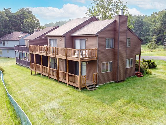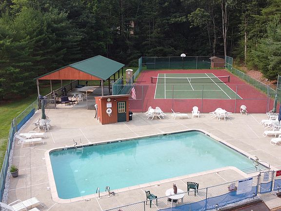 VIEWS! This contemporary townhouse overlooks a private community pond and pool and borders an airstrip with hangers. Ideal spot for a pilot! The in-ground pool, tennis court, fishing and picnic area are just steps from your front door. Open floor plan with plenty of glass to capture lots of light and the views. Features primary suit with sitting area and private full bath, and 2 additional bedrooms. Conveniently located just minutes to Lake Wallenpaupack and major highways, water parks, skiing, and casinos., Beds Description: 2+BED 2nd, Baths: 1/2 Bath Lev 1, Baths: 2 Bath Lev 2, Eating Area: Dining Area, Sewer: WS Comm Central