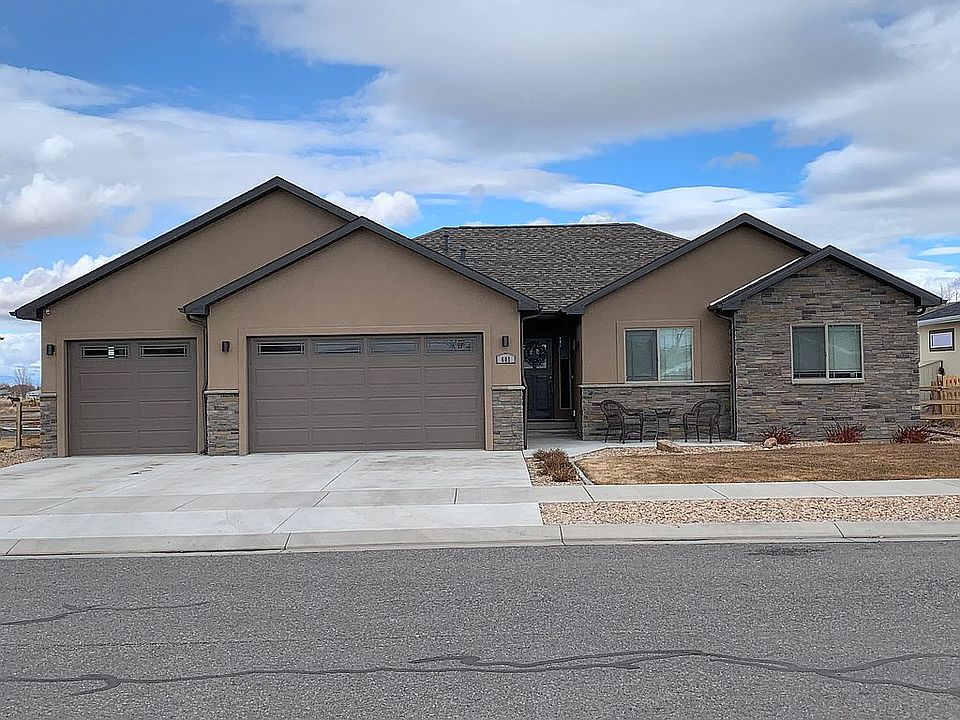 REALTORS WELCOME! This ranch style house is located in Cobble Creek Golf community off of Spruce Point. Open floor plan with laminate wood flooring throughout kitchen and main living room area with tiled laundry room and baths. Spacious kitchen with black stainless appliances included. Finished 3 car garage. Forced air gas heat, on demand hot water heater, and central A/C. Expanded covered patio with ceiling fan and wired for TV. The beautifully landscaped yard is equipped with a sprinkler system, drip system, and a relaxing water feature. Security system included. Realtors welcome with a negotiated percentage.