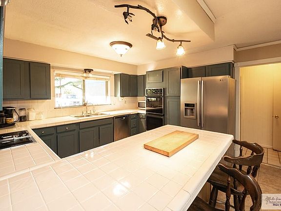 Two primary bedrooms in this spacious home in Rio Hondo! Sitting on close to a half acre, this home has character and mature trees galore! A full bath divides the two secondary bedrooms, one of which has double the amount of regular closet space! Wet bar just off the living room area and a large wood-burning fireplace in between the kitchen and dining room. The kitchen has plenty of storage and countertop space for the busiest of home chefs. There's a walk-in pantry to boot! Laundry room inside, plus a two-car garage! The covered patio overlooks the large backyard of mature trees, citrus plants, a storage building & a chicken coop. Two more great bonuses! - A new roof AND a second water meter conveniently connected to the sprinkler system.