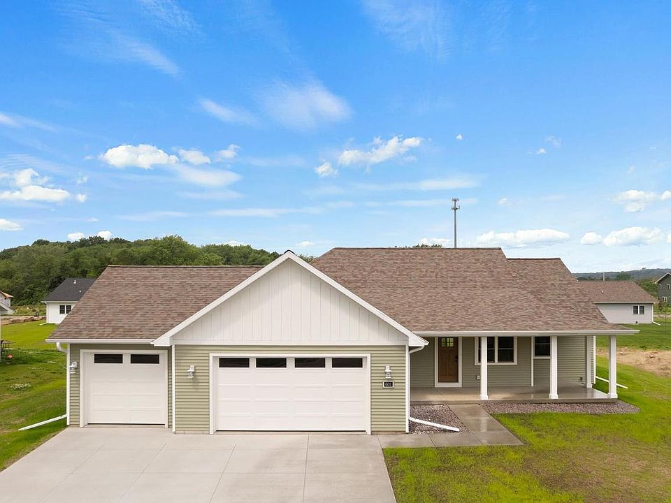 Be the next person to own the popular Zappa plan but now with a 3-car garage! This split-bedroom home features a covered porch on BOTH the front and back of the home, a walk-in pantry, soft-close cabinetry, LVP flooring, a primary suite with double sink, soaking tub & a tile shower. The lower level has egress windows and stubbed bathroom for future expansion. Each garage features an Electric vehicle charging outlet. Neighborhood perks include city water/sewer, sidewalks, a conservancy with hiking trails and a future city park.