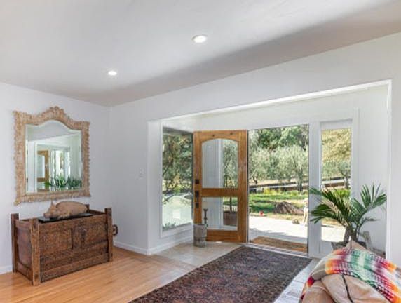 Comfort and Privacy, Olive Orchard Living. Experience the true Napa Valley lifestyle in this one-of-a-kind home set amidst a private family olive grove. The comforts of this well-appointed, light filled home are tucked away in the St. Helena countryside, yet only eight minutes from the heart of downtown St Helena where you will find fabulous dining, historic movie theater, high-end shopping and endless wineries to explore. Enjoy the solitude of being surrounded by olive groves and rolling hillsides while relaxing with a welcoming complimentary bottle of wine. The beautifully landscaped backyard includes a charcoal grill for evening family barbeques, and a north facing covered lounge area which provides shade from the summer sun. The patio has a dramatic view of hundred-year-old oaks and a dramatic natural skyline and provides for wonder bird watching. The fully equipped kitchen is open and spacious, perfect for the gourmet chief, or the family who loves to cook together while the kids, or friends watch from the open counter bar. Hardwood floors run throughout the house, with Oriental area rugs accenting the rooms. The living room has casual oversized leather couch facing a cozy working fireplace and large screen television mounted above the mantle. The spacious dining room allows for the oversized country farm table to expand for larger gatherings, and the room opens out thru sliding doors to the covered porch for outdoor dining and grilling. The house is approximately 2,000 square feet but has plenty of space to allow everyone to find their private spot to relax, read, nap or catch up on emails. When not touring wineries, shopping, or dining at the one of the Valley's world class restaurants, enjoy the quiet of this wonderful house or take an afternoon stroll on our 2 acres of olive orchards and wooded country property. Sleeps 6: BR #1 one king bed, 50" TV, sliding doors open onto the back lawn, private bath and shared shower. BR #2 one queen bed, private bath and shared shower. BR #3 one queen bed, 50" TV, includes office desk and work area with private entrance. Weekly housekeeping, Wi-Fi, utilities, and gardening service included. Carport for 2 cars, ample additional guest parking. This is the perfect retreat for either a full summer rental, or a private creative space for that short term get-away. Wonderful for outdoor enthusiasts as there is plenty of hiking at the nearby reservoir which is surrounded by wilderness. NOTE: While the house is located in the Napa countryside, there are neighbors nearby that guests must be considerate of. We kindly ask that our No smoking and No large parties' policy is observed. Pets are considered with an additional deposit. We want to accommodate your summer holiday plans so please reach out you have questions or special requests, and we will do everything we can to help you with those requests. Weekly housekeeping, Wi-Fi, utilities, and gardening service included. Carport for 2 cars, ample additional guest parking. NOTE: While the house is located in the Napa countryside, there are neighbors nearby that guests must be considerate of. We kindly ask that our No smoking and No large parties' policy is observed. Pets are considered with an additional deposit.