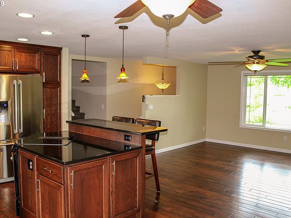 - Ceiling Fan(s), Hardwood Floors, Bay Window, Bathroom, Tile Floor, Granite, Island