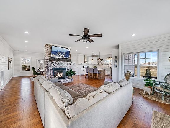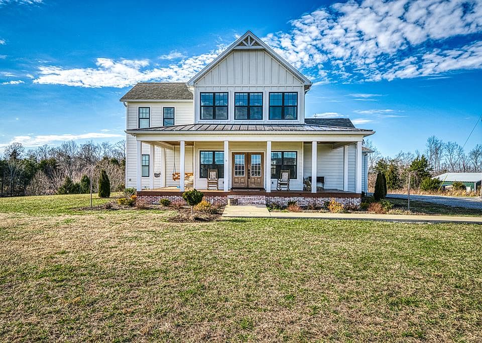 Beautiful all white 3BR, 2.5BA farmhouse home on 5 or 10 acres. Full size front porch w/ gorgeous views of the countryside. Walk in to 9ft ceilings and an open floorplan where you will see hand scraped engineered hardwood flooring throughout. Tile in the bathrooms & laundry room. The see through gas FP gives that sense of warmth throughout the home & on into the eat-in kitchen area. There you will find a gas range stove/oven, granite counter tops & stainless appliances. You will love the use of shiplap in this custom built home! The master has a huge custom tiled shower, jacuzzi tub, granite vanities & walk-in closet w/ barn door. Upstairs there are 2bedrooms and 1 bath w/ a bonus room. Don't forget the view of the pond from your back covered deck. This home is just too good to be true!