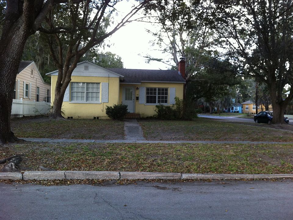 COLLEGE PARK: Delight in this completely renovated, charming bungalow amongst majestic oak trees on a large corner lot in popular College Park. Everything in this block two bedroom/one bathroom home is NEW in the past few years: including roof, windows, doors, drywall, electrical, plumbing, kitchen, bathroom, A/C, appliances, garage door, and landscaping. Original charm shines through in the stunning refinished hardwood floors and the wood-burning fireplace with its brick chimney setting the scene for a lovely outdoor seating area. A bonus flex space makes for the perfect office and leads outside to a private side courtyard. There is ample storage with dual master bedroom closets and an oversized one-car garage. Modern finishes and LED lighting are throughout this smart floor plan. LOCATION is ideal - minutes to I-4 and everything College Park has to offer - community center and pool, Edgewater Drive, Princeton Park, and highly sought-after Princeton Elementary School.
