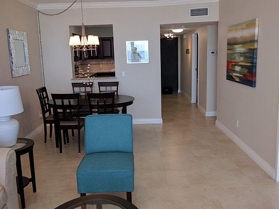 This oceanfront condo has a fantastic view and has been totally renovated with new kitchen and bathrooms. Unit is fresh and very clean. Furnishings are modern and classic. Master bedroom faces the ocean and features a king bed; guest bedroom has a trundle bed. Brand new washer/dryer in unit. Parking includes one garage space as well as additional open parking. Condo has a private pool as well as a clubhouse. No pets. No smoking. Centrally located on the beaches and convenient to shopping and restaurants. Excellent credit score is required. Owner pays for water. Tenant pays for electric, cable tv and internet.