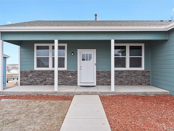 Welcome to this upgraded home in newly constructed Bijou Creek. Beautifully finished ranch with three bedrooms, including owner's suite, located on the main level. Kitchen boasts granite countertops, kitchen island and stainless steel appliances. Master bedroom suite includes attached bathroom with double sinks and walk-in closet. Walkout to extra large backyard overlooking the plains. Enjoy relaxing on custom deck spanning the full length of the home or find shade on the full length concrete patio underneath. Plenty of storage for vehicles and gear in the three-car garage. Cost saving solar panels, installed by Ion Solar, are owned outright and come with transferrable warranty. Full unfinished basement offers endless possibilities and includes insulation throughout, egress windows and plumbing for a bathroom. Sellers spared no expense when thoughtfully building this home. Big bang for your buck - it has everything you need less than one hour outside of Denver.