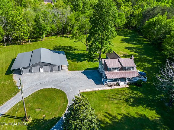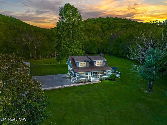 **Back on market, previous buyer lost their financing!** Breathtaking Property with Over 5 Acres Available in Sevierville! 3BR/2.5 BA. Located just 15 minutes east of Downtown Sevierville, this hidden gem is everything you are looking for in your Smoky Mountain Home! Property features over 600 feet of river frontage along the East prong of the Little Pigeon River and is backed by two huge mountains offering privacy and peace. Stepping through the long covered front porch, this modern yet rustic cabin-style home features open concept main living area complete with gas-log stone fireplace, exposed beam ceilings and matching Luxury Vinyl Plank flooring giving the entire space an aesthetically pleasing and comfortable feel. Remodeled in 2020 with updates to this home including new electrical, new plumbing, new High Efficiency HVAC with heat pump ($12,000 unit!), new interior and exterior paint, new LED lighting fixtures, new windows, newer carpet, newer metal roof and new finished addition to the home. Kitchen features all new cabinets and countertops, under cabinet lighting, stainless steel appliances, farmhouse sink and real stone backsplash, a unique touch. Primary master suite on the main level features lofted ceilings with high windows, cozy bedside fireplace and private ensuite bath complete with spa-like stone and tile shower. Two large additional guest bedrooms upstairs. Spend your evenings relaxing on the deck overlooking the expansive lot, cleared, level and surrounded by woods. This property can be subdivided into individual 1 acre parcels to accommodate four additional home sites--potential for great long term rental income! Another great amenity in this home is the enormous detached insulated, metal 8+ car garage (1,728 square feet; built in 2020) with RV parking (30 amp hookup), 4 bays and TONS of storage/work space. Private well house on site includes new well bladder tank. No HOA. This property is so special and is sure to check ALL of your boxes.