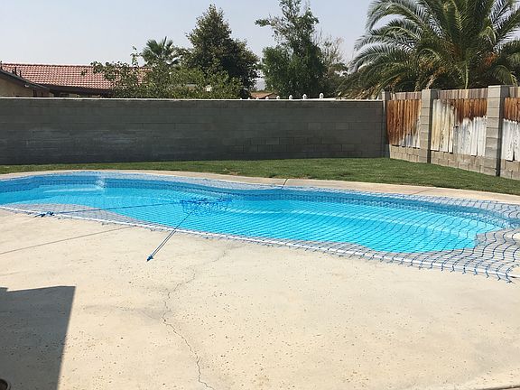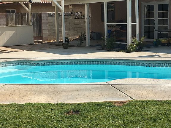 MUST SEE GORGEOUS POOL home! This clean and open home is perfect for entertaining with its large and landscaped back yard. The pool has a safety net with newer energy efficient pool pump and brand new filter. The front yard has been zeroscaped with beautiful river rock and drought tolerant plants, and has RV access on the side yard. Inside features a freshly painted kitchen with new appliances, scraped ceilings, energy efficient dual pack heating and air conditioning, as well as swamp cooler. Water heater is under two years old. Brand new garbage disposal. In the living room is an upgraded fireplace insert/woodburning stove which is wonderful for a cozy winter day. Large master bedroom with lots of closet space and dual sinks in the bathroom. All rooms have ceiling fans. Hallway has cabinets and two closets for storage. This home has everything you are looking for! Call Ashleigh to schedule a viewing (760)264-6710