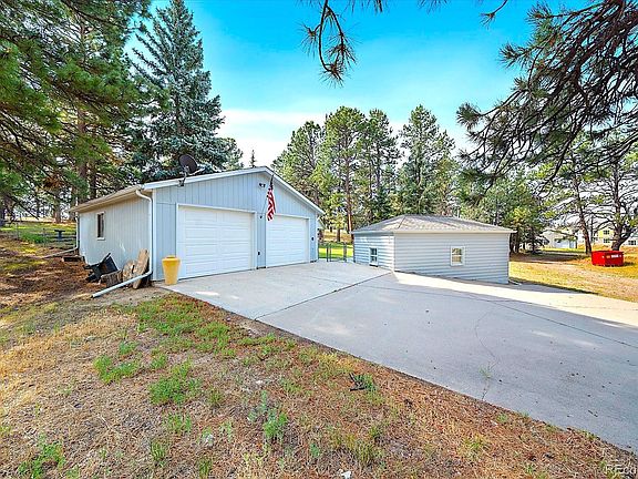 Calling all investors, builders, horse enthusiasts, Car collectors and/or just someone looking for a little elbow room. The price reflects the 4 total lots (total of 5.481 acres) with close in proximity to the town of Elizabeth in the Elizabeth Acres neighborhood. Great frontage across from Big R with mature trees and mountain views. Build your dream home next door on the vacant lot or barn while you live in the 1951 bungalow style home. Need a place to run your business then the huge outbuilding with heat, phase 3, upgraded electrical and bathroom could just be the place to run it from. Don't forget about the other outbuildings on the lot: Large metal storage shed for hay or wood storage, small heated studio/office , and 2 car detached garage. The meticulously maintained primary home features 1970 sq feet finished, 2 bedrooms, 2 baths, 2 fireplaces, office space in basement, wet bar, and secondary rec/family room. Enjoy all that the quaint town of Elizabeth has to offer while enjoying all of the new and planned amenities. Walk score is high on this property and will only get better as the town grows. The opportunities are endless for this unique property.
